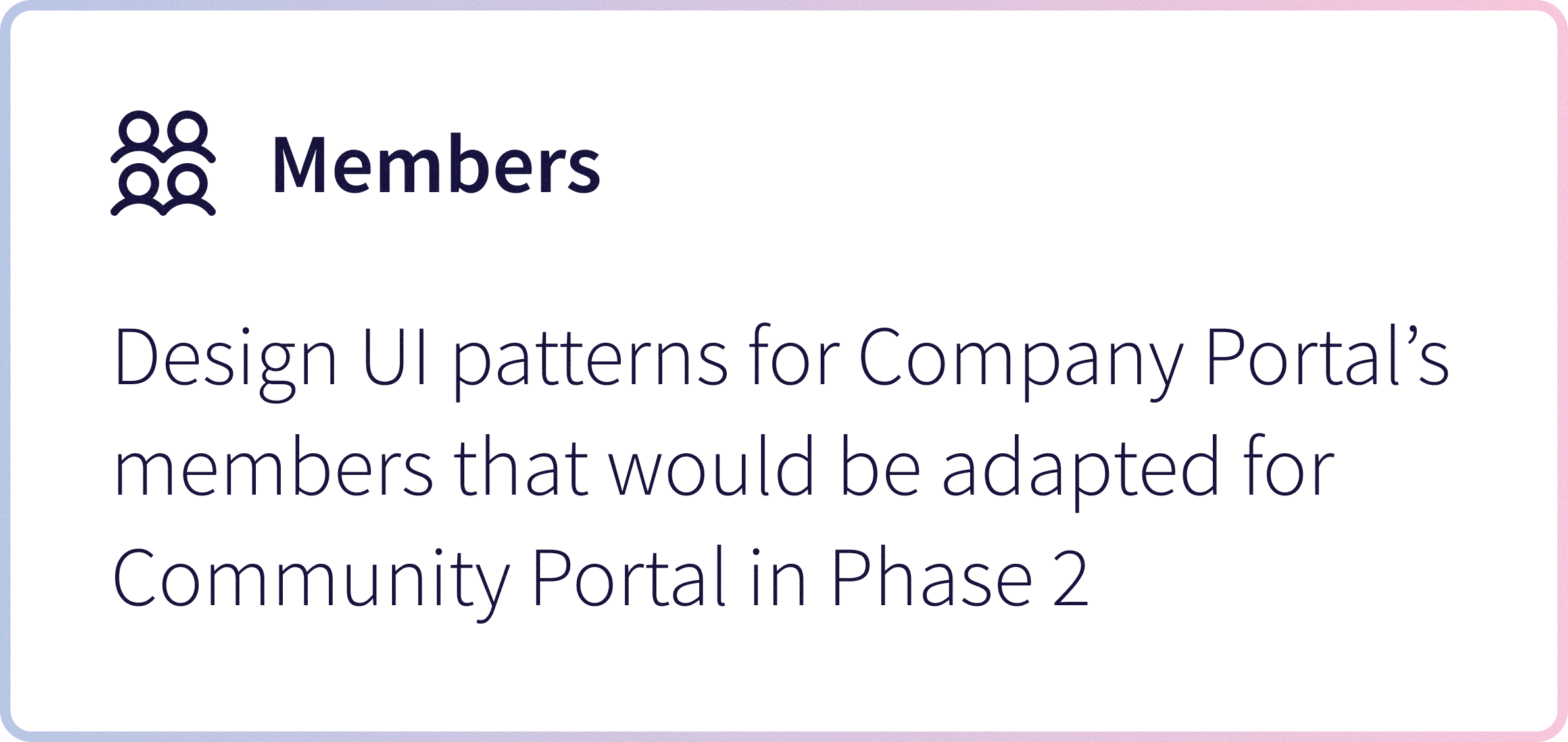 I delivered the Community Admin Portal design within the 2-month timeline, including launch-ready designs and the underlying platform architecture with documentation for engineering handoff.