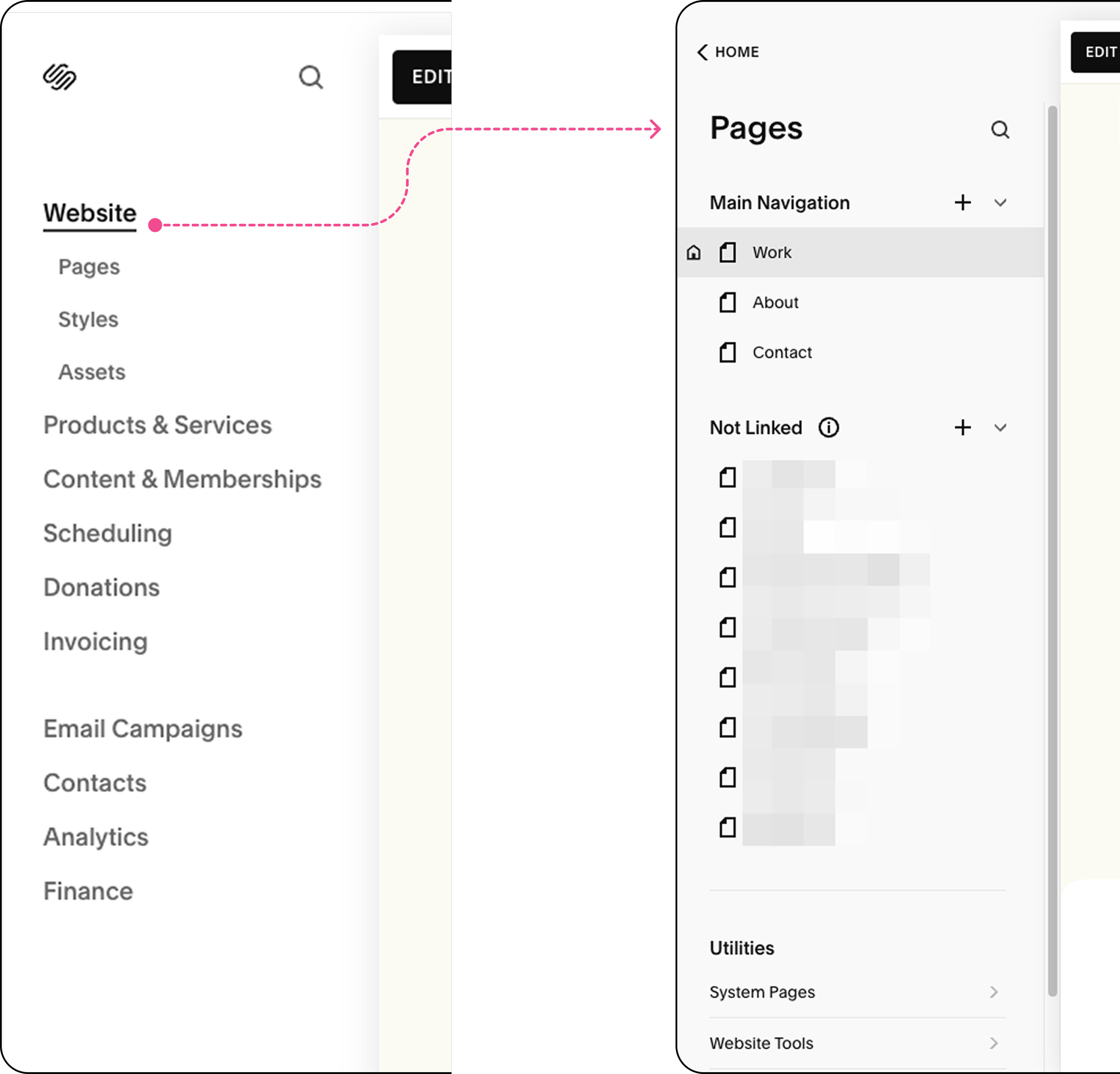 While working on my Squarespace portfolio, I noticed their overlay menu reduced overwhelm compared to hierarchical navigation.