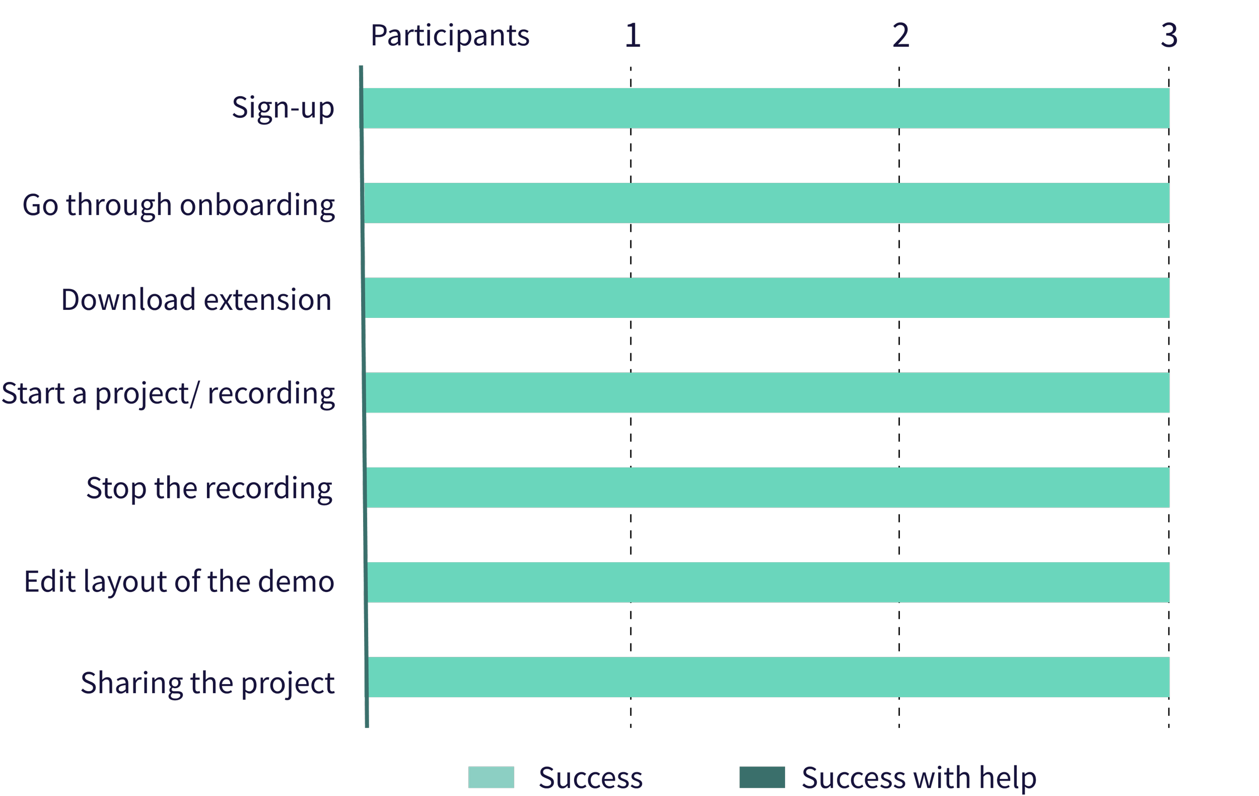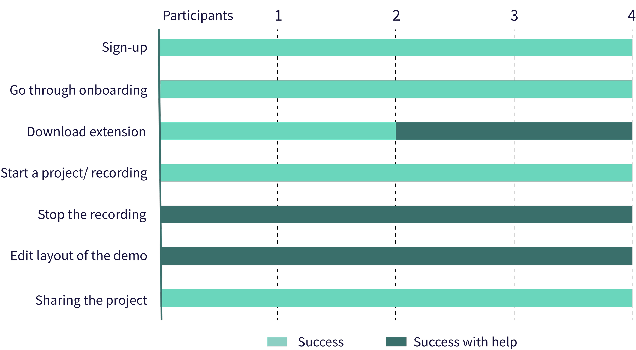 We conducted task analyses of three competing demo tools, to pinpoint areas where users might drop off, with a particular emphasis on the steps from sign-up → extension download → project creation → sharing.