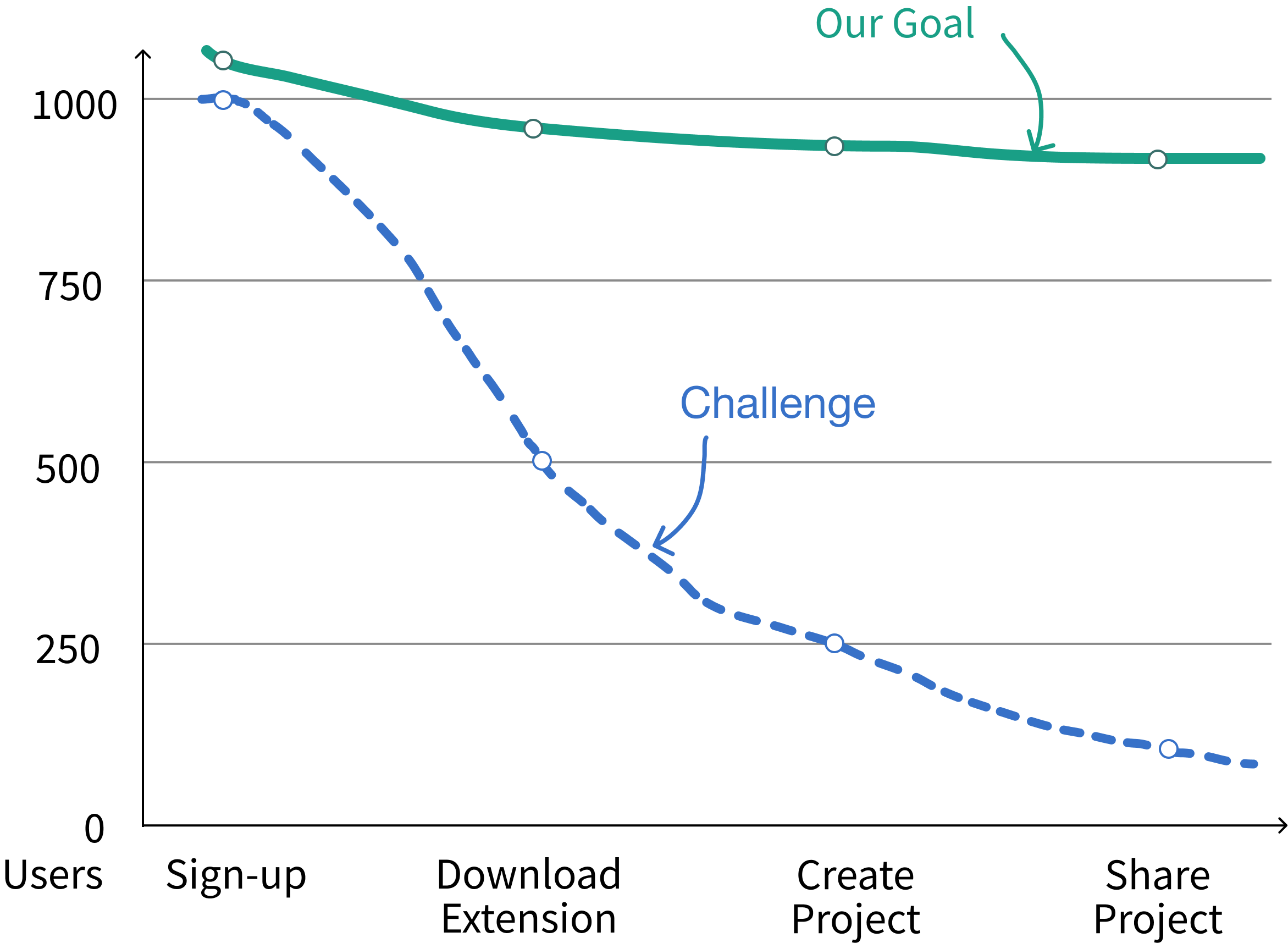 Challenge: Identify the reason behind 50% user drop-off between signup and extension download and redesign the user journey from sign-up to project sharing to improve activation, within a 3-week timeline.